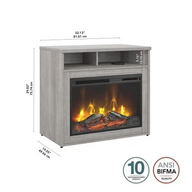 - 32W x 20D x 30H Electric Fireplace with Shelf allows you to organize your workspace while enjoying a cozy charm