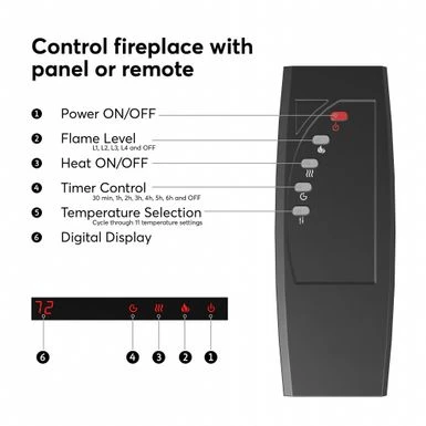 - Remote control conveniently adjusts the brightness setting, temperature, and sets the fireplace on a timer for hassle-free use