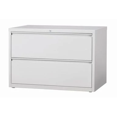 Organize your office with the Hirsh HL8000 Series 42-inch wide Lateral File Cabinet in Light Gray. With two spacious drawers, this cabinet can accommodate both letter and legal-sized files. The interlocking system prevents tipping, while the core-removable lock ensures security. The precision ball-bearing suspension makes for smooth and quiet drawer function, and the reinforced base construction provides added stability on uneven surfaces. This cabinet is Greenguard Gold Certified and meets or exceeds ANSI/BIFMA performance standards.
