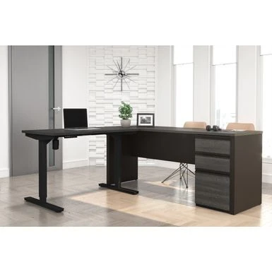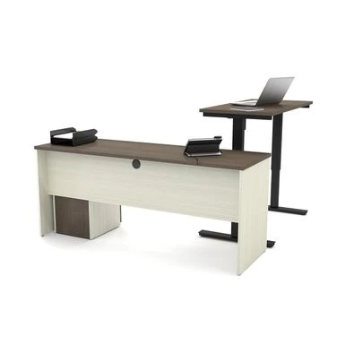 Stand up and move around freely behind the adjustable desk by employing the electrical adjustment to raise the height. With added drawer storage for your items and a wire-management system to maintain a professional appearance, this furniture set is an innovative way to update your home office.