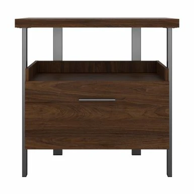 This distinctively alluring, single-drawer lateral file cabinet features a simple, durable design made with contrasting materials that reflect a modern industrial aesthetic. A single file drawer opens on smooth, full-extension ball-bearing slides for an easy reach to legal and letter-size documents.