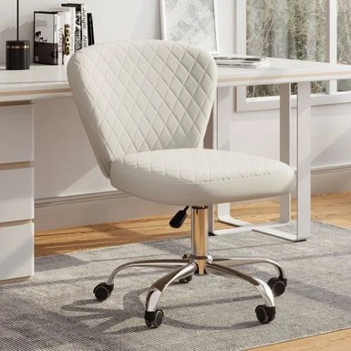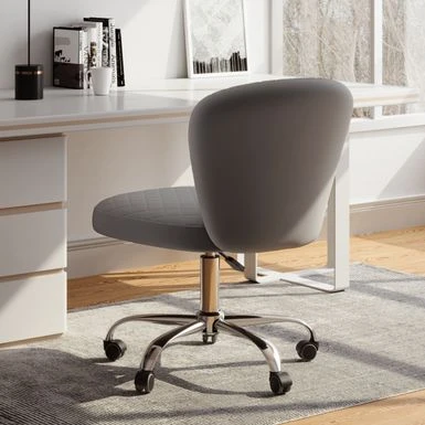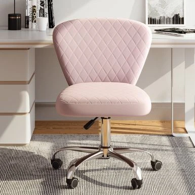 This eye-catching office chair is the perfect way to coming style and function. Upholstered in ultra-soft velvet fabric, this chair comes in your choice of color and features thick foam padding and an ergonomic armless seat. The 360-degree swivel and adjustable height ensures this chair will work with virtually any desk.