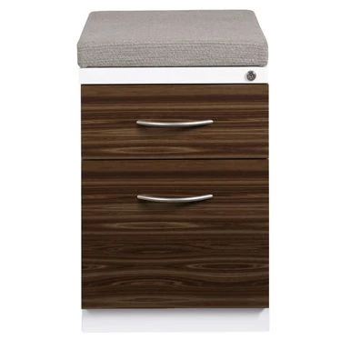 Stay productive at work with the Hirsh 20-inch Deep Mobile Pedestal File 2-Drawer Box/File. This commercial grade mobile pedestal is built to last with its durable steel construction and wood laminate drawer fronts with satin nickel arch pull handles. The included seat cushion adds comfort during long work hours. With factory installed hidden casters, full extension drawers, counterweights, drawer divider, pencil tray, and a core-removable lock, this pedestal ensures security and easy mobility. Its ball-bearing suspension guarantees a smooth and quiet drawer performance. Accommodates letter-size hanging files. Available in white/chinchilla/walnut colors. Meets or exceeds ANSI/BIFMA industry standards and is Greenguard Gold Certified.