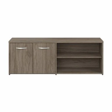 The Bush Business Furniture Hybrid Low Storage Cabinet with Doors and Shelves offers a stylish, long-lasting workplace organization solution for the modern professional. The Bush Business Furniture Hybrid Low Storage Cabinet with Doors and Shelves offers a stylish, long-lasting workplace organization solution for the modern professional. Its open and closed compartments each include one fixed shelf and one adjustable shelf to accommodate everything from books and reference materials to decorations. Each shelf supports up to 50 pounds, so storing and displaying larger items is never an issue. The surface of the storage credenza can be used as a practical place to keep a small printer and other equipment or to give your workspace a personal touch with pictures, plants and more. Find the perfect look for your space with five contemporary finish options: Black Walnut, Modern Hickory, Platinum Gray, Storm Gray and White. This office credenza storage cabinet has been meticulously tested to meet or exceed ANSI/BIFMA quality standards for safety, durability and performance and is backed by the Bush Business Furniture 10 Year Manufacturer’s Warranty. See the full Hybrid Collection for coordinating items to enhance your workspace as needed, including Computer Desks, File Cabinets and Bookcases (coordinating items sold separately).