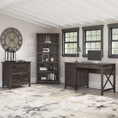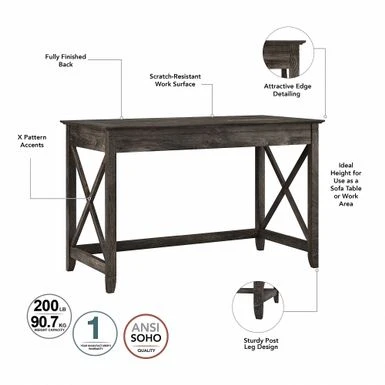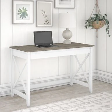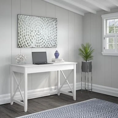 Transform your home office with the Key West 48W Writing Desk by Bush Furniture. Its sleek and sophisticated design adds traditional refinement to any decor. This writing desk features a durable work surface and a unique X pattern accent on the side panels. It has an ideal height for use as a sofa table or work area. With a fully finished back, it offers attractive and convenient organizational capacities to your space.