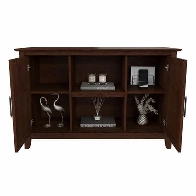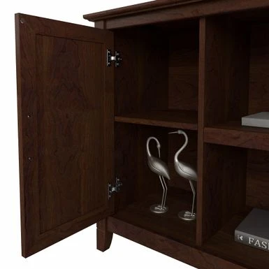 Add a casual touch of style to your home with the versatile and practical Bush Furniture Key West Accent Cabinet with Doors. Ideal for a variety of residential spaces, this 2 door storage cabinet features internal compartments with one fixed and one adjustable shelf on each side to accommodate various items. The center open shelves offer a great display area for your favorite pictures and decorations. With its unique X pattern accents and post leg design, this accent cabinet works well with coastal, cottage, and modern farmhouse style décor. Choose from Washed Gray, Bing Cherry, Pure White Oak or Cape Cod Gray finishes to match your personal taste. This high-quality accent cabinet has been rigorously tested for safety, durability, and performance, and comes with a 1-year manufacturer’s warranty. Check out the full Key West Collection for additional coordinating items such as home office, storage, living room, and bathroom furniture.