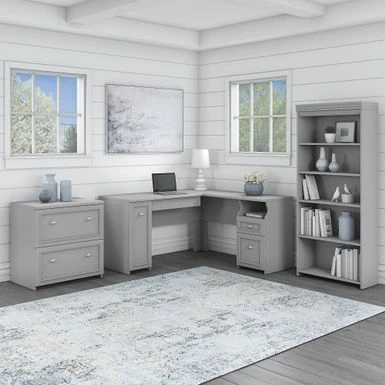 - Set includes 1 desk, 1 bookcase, and 1 file cabinet