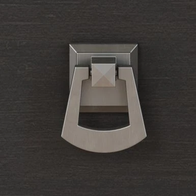 - Elegant metal drop pull hardware finished in tumbled pewter