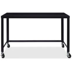 - Durable melamine surface resists scratches, stains, and wear and supports up to 200 pounds of office equipment
