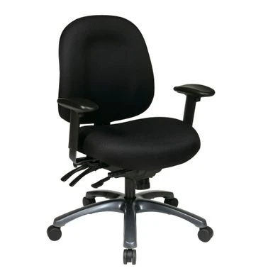 Work in comfort and style in the new Pro-Line II Multi-Function Mid-Back Chair. Perfect for workers who spend extended periods of time at their work stations, this intelligently designed chair provides comfort and support to both your body and mind. Intelligently outfitted with a vertically adjustable Ratchet back height adjustment, this chair is ideal for folks of large and small statures alike. The thick contoured molded back with built in lumbar support, and high quality foam seat affords for hours of cozy seating, minimizing fatigue and alleviating pressure on the spine. The one touch pneumatic seating adjustments allow you to elevate to the perfect height while the deluxe Multi-function control with forward tilt lets you adjust the seat and back angles to help reduce fatigue in your back and thighs. Complete with height and width adjustable arms with soft PU pads and a durable heavy duty Titanium finish base with dual wheel carpet casters that provide for effortless mobility across tile and carpet floors alike. With advanced design and quality construction, this seating option is no doubt an office favorite. Add to cart now for online savings on this durable office chair.