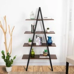 Glitzhome Casual 3-5 Tier Etagere Storage Bookcase Ladder Bookshelf – Brown-3.5FT-H Shape