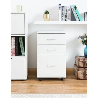 Add style and function to your office with the Porch & Den Cora 3-drawer Rolling File Cabinet. Made from durable wood, this cabinet features two drawers for your office supplies and a bottom drawer for your files and folders. With casters for easy mobility, this cabinet is available in cherry or white finish to match your decor perfectly.