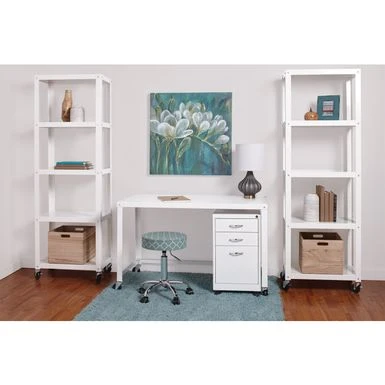 Porch & Den Leigh Industrial Modern Mobile 5-shelf Bookcase Cart – White