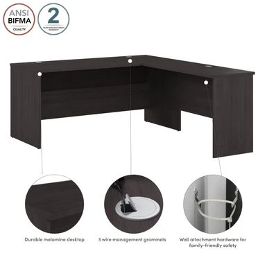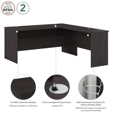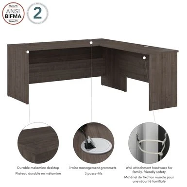 - Return can be used on either side of the desk for a left- or right-handed L-shaped configuration