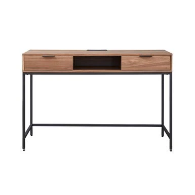 The perfect mix of modern and rustic. This office collection will make set your home office apart from the rest. Featuring walnut veneered MDF for durability on a black steel frame. This desk features an open storage space as well as 2 storage drawers. Wire compartment on the desktop gives you a place for 2 outlets, 2 usb ports, as well as a space to run any additional wires through. Be sure to check out the rest of this beautiful collection to complete the look.