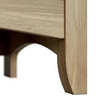 - Tapered legs, curved base rails and decorative wood accents inspired by timeless Mission style