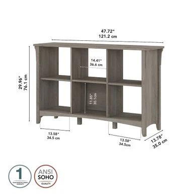 - 48W x 14D x 30H Cube Organizer has six cubby spaces to store home and office supplies or display decorative accents
