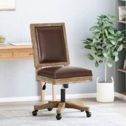 Sandine Upholstered Swivel Office Chair By Christopher Knight Home – Charcoal + Grey Weathered