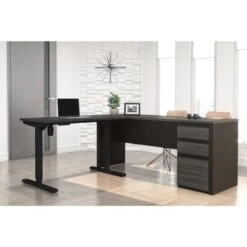 Baxton Studio Palmira Industrial Wood And Metal Desk With Shelves-Walnut Brown – Walnut Brown, Black