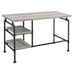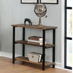 Carbon Loft Lawrence 2-shelf Metal And Solid Wood Under-window Bookcase – Brown – Wood Finish