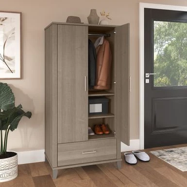 - 32W x 21D x 65H Tall Entryway Cabinet with Doors and Drawer offers plenty of storage for shoes, outerwear and more
