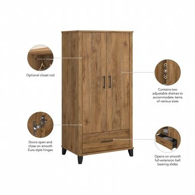 - Tall cabinet contains one fixed shelf, two adjustable shelves and one optional closet rod for installation to accommodate items of various sizes