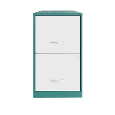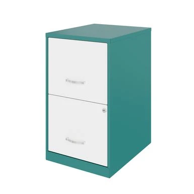 Organize your office space with the Space Solutions 18in. 2 Drawer Metal File Cabinet in teal. This sleek and smart file cabinet is specially designed to maximize small office and home office spaces. The full high-side drawers are perfect for storing and organizing your letter-sized hanging files, while also providing ample storage space for other office essentials. You can be assured of smooth and easy drawer operation thanks to the patented glide suspension system and three-quarter drawer extension. The built-in lock secures both drawers, ensuring the safety of your files and possessions. Made with a painted steel surface that is easy to disinfect and clean, this file cabinet is perfect for personal use or occasional file retrieval. It comes fully assembled, so you can start organizing your workspace right away!