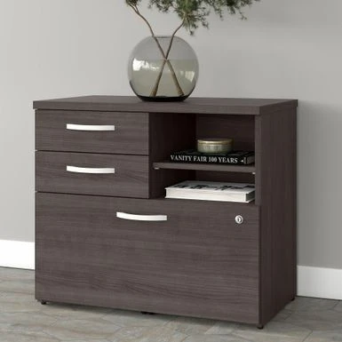 - 30W x 17D x 26H Office Storage Cabinet with Drawers and Shelves presents a practical organization solution for the modern professional