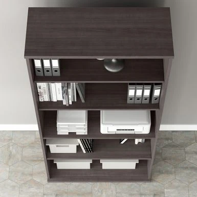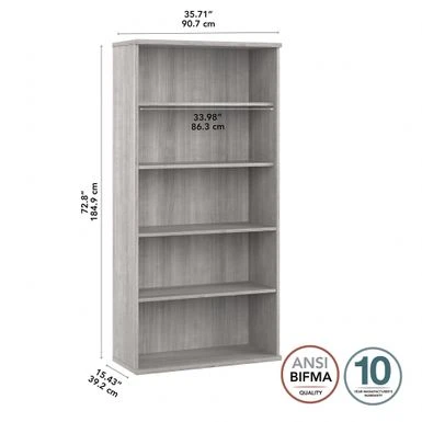 - 36W x 16D x 73H Tall 5 Shelf Bookcase presents a practical workplace storage and display solution for the modern professional