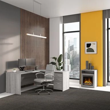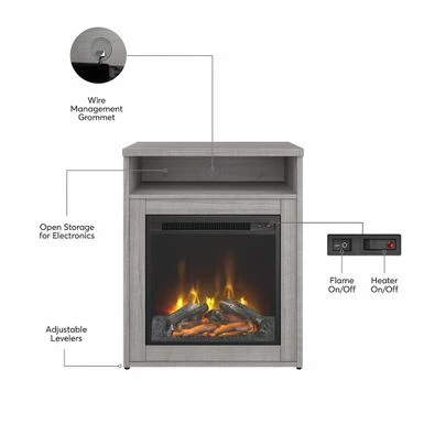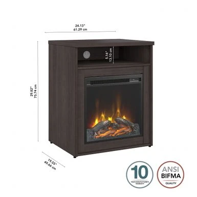 - 24W x 20D x 30H Electric Fireplace with Shelf allows you to organize your workspace while enjoying a cozy charm