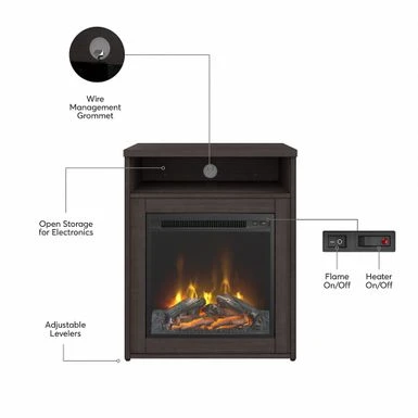 - Small Electric Fireplace’s base features adjustable levelers to compensate for uneven floors