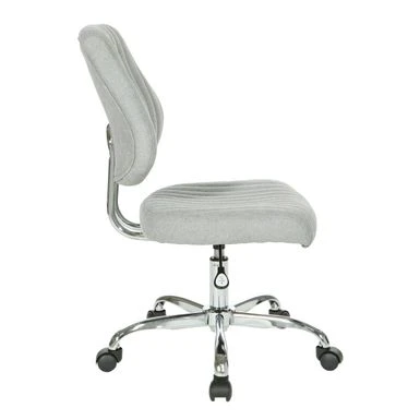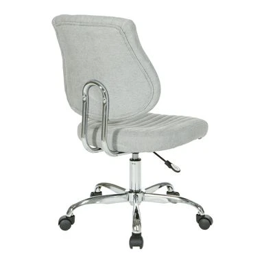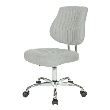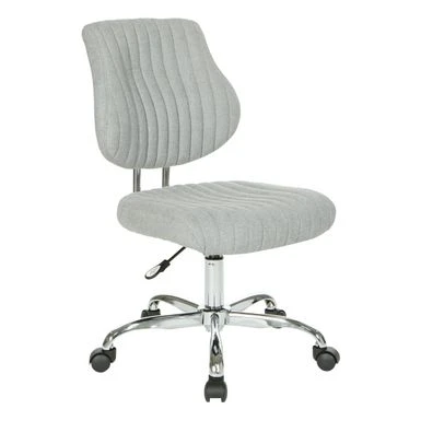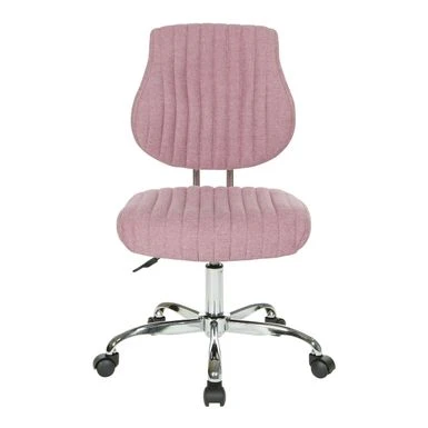 Fun fashionable colors and modern silhouette, the Sunnydale office chair delivers warmth and style to your home office. Plush channel tufted seat and back with built in lumbar support is as pretty as it is comfortable. Fun fashionable colors and modern silhouette, the Sunnydale office chair delivers warmth and style to your home office. Plush channel tufted seat and back with built in lumbar support is as pretty as it is comfortable. The pneumatic height adjustment and 360? rotation allow for flexibility of use in your work space. Durable chrome base adds a lovely sheen, while you travel easily across your floor on the heavy-duty dual carpet castors. This chair not only brings color and style, but also offers outstanding functionality to make your work day smoother and easier. Modern style office chair Plush tufted seat and back for comfort Built in lumbar support Pneumatic height adjustment 360? rotation Durable chrome base adds attractive style Heavy duty dual carpet Castor glide across flooring with ease Assembled Dimensions: 25.13 inches wide x 23.81 inches deep x 38.31 inches high Seat Dimensions: 19 inches wide x 17.75 inches deep x 3.25 inches thick Back Dimensions: 18.19 inches wide x 17.88 inches high x 2 inches thick