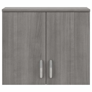 - Wall mounted cabinet contains one fixed shelf and one adjustable shelf for flexible storage