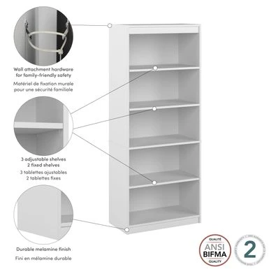 - 3 adjustable shelves offer flexible storage of books, office supplies, and more